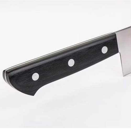Pakkawood-håndtag (harpiksimpregneret laminat): hygiejnisk, formstabilt og meget slidstærkt – tåler fugt og hyppig anvendelse.