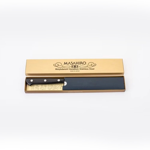 Masahiro Super Light 15 cm er serien, hvor Koji Hattori har trimmet vægten, øget smidigheden og bevaret den skarphed, der har gjort Masahiro berømt. Universalkniv 15 cm er det oplagte supplement til kokkekniven: lille nok til detaljearbejde, men tilstrækkelig lang til effektiv forberedelse.
